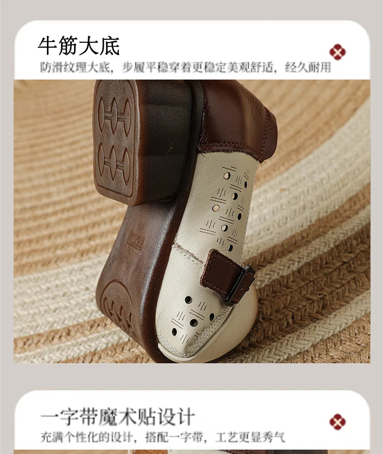 Ancient Low Heels Women’s Buckle Pumps – Elegant Cutout Summer Sandals for Ladies, Comfortable Mom Heeled Shoes